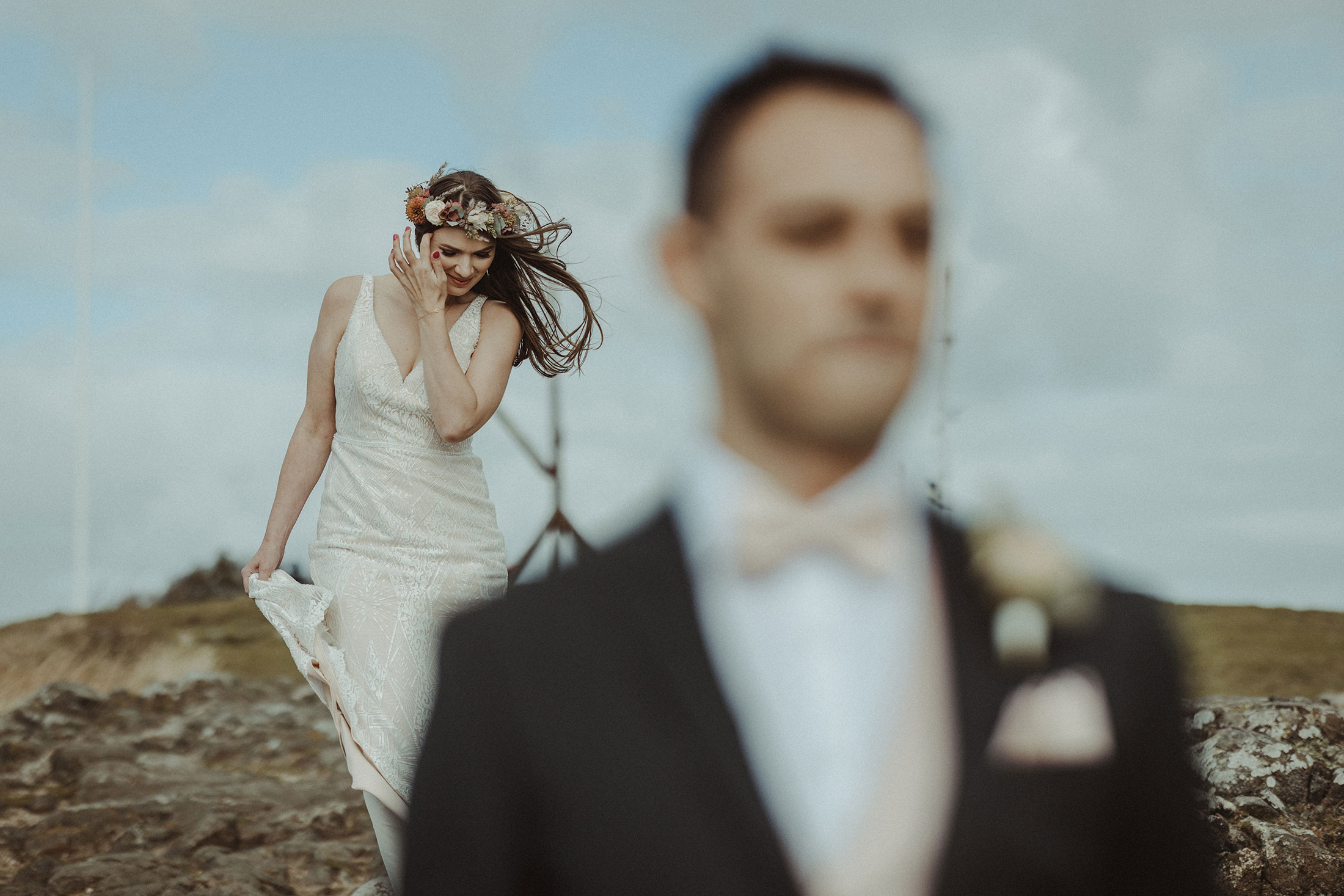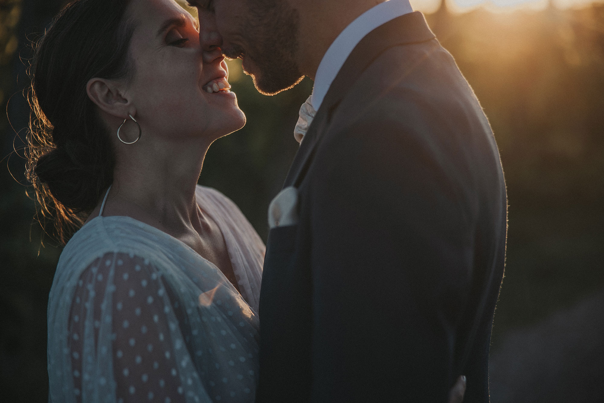 Innan vigseln tar vi vanligtvis porträtten – en stund för er själva innan det är dags. Det är mindre stressigt för er då och som ett andrum innan det drar igång. Jag börjar ofta med en enkel promenad och hittar platser och ljus, vilket får er att slappna av och glömma kameran. Ingen stel posering, bara naturliga och vackra bilder. Här försöker vi blanda enskilda porträtt, romantiska närbilder, klassiska parbilder och lite bus om vi känner för det.