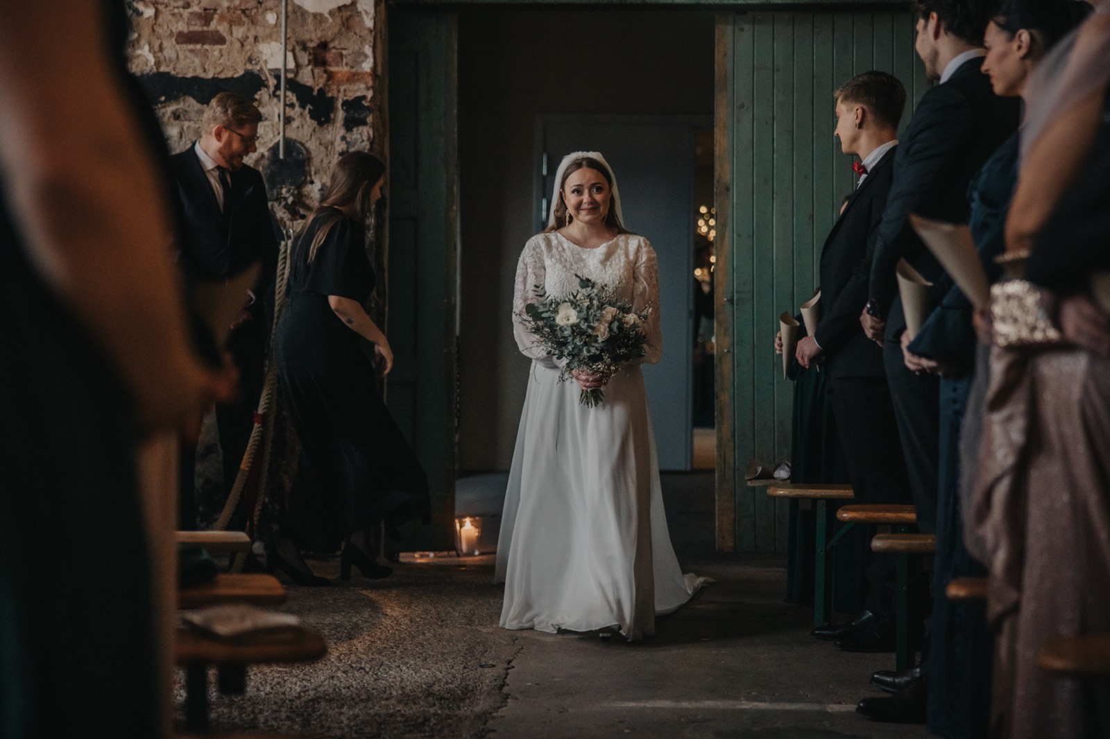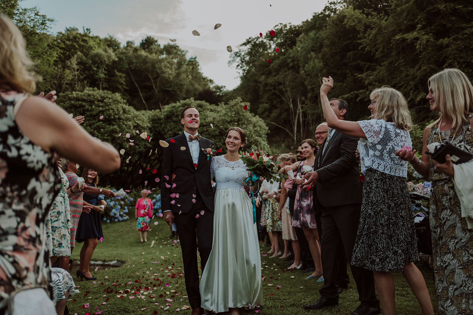 Här kommer fjärilarna! Jag dokumenterar er och era gästers reaktioner under ceremonin, med fokus på äkta känslor. Jag rör mig diskret och följer regler för kyrka eller plats. Det finns många sätt att hyllas av era nära samt lämna vigselplatsen. Det går vi igenom tillsammans i vårt första möte.