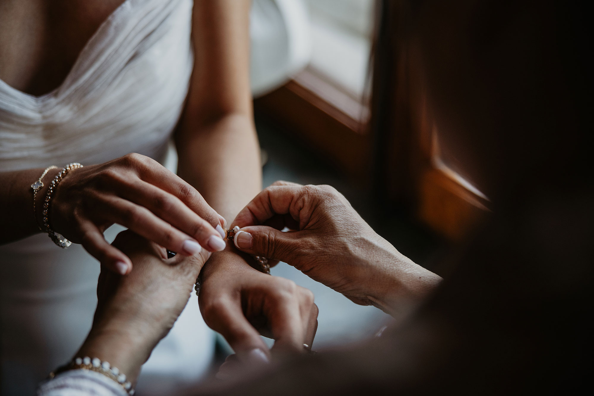 Morgonen är en av de mest speciella delarna av dagen. Jag kommer cirka 1 timme innan porträttfotograferingen (om vi fotograferar porträtt innan vigsel vilket är det vanligaste) för att dokumentera detaljer som brudklänning, kostym, skor, blommor och accessoarer. Varje liten detalj är en viktig del av er berättelse. Jag fotograferar på ett avslappnat sätt och fångar förmiddagens naturliga ögonblick - sista sminket på plats och brudklänningen ska på. Fångar känslan tillsammans med nära och kära.